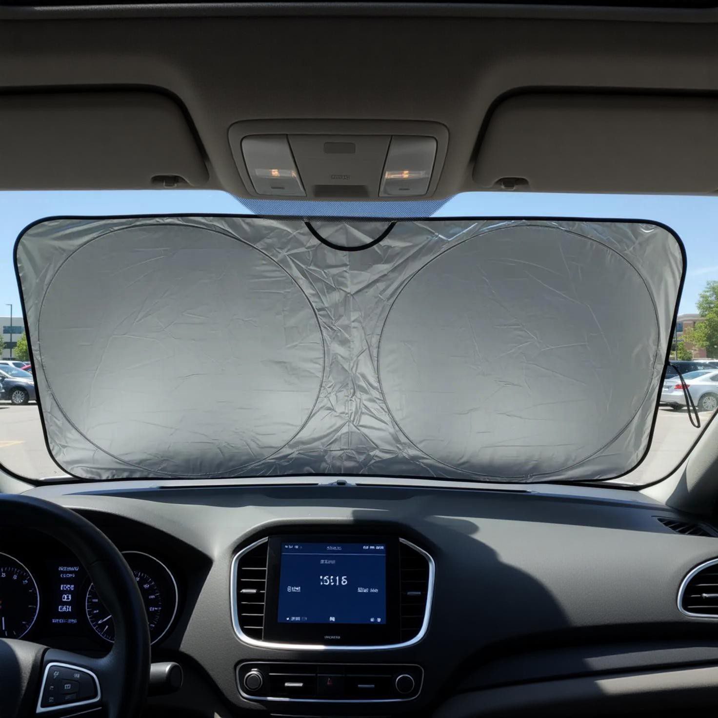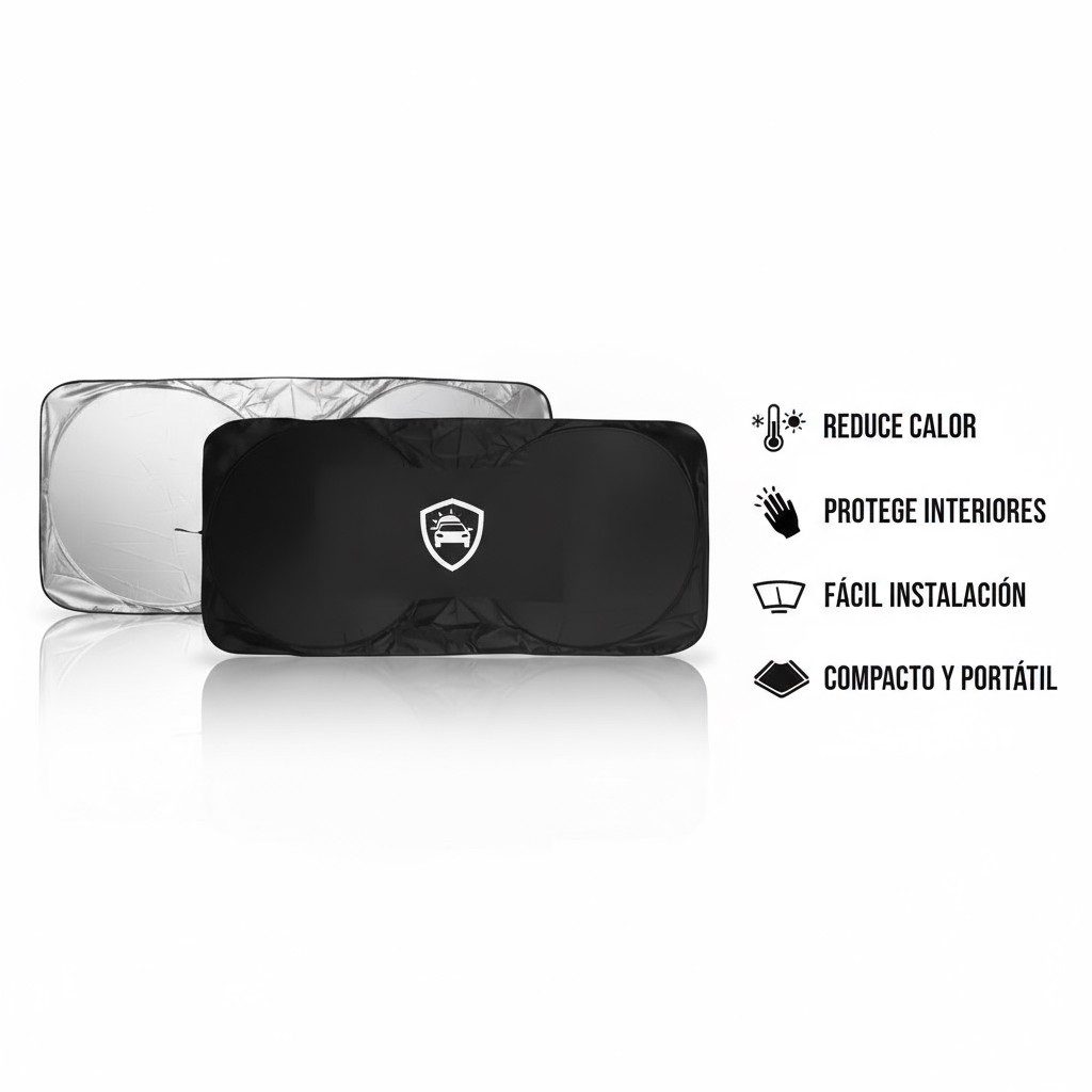 El parasol cuenta con una estructura flexible de doble capa reflectante que bloquea eficazmente el sol, manteniendo el interior más fresco y prolongando la vida útil de los materiales. Además, ofrece una instalación rápida y sencilla, adaptándose a la mayoría de los parabrisas de autos, SUVs y camionetas.