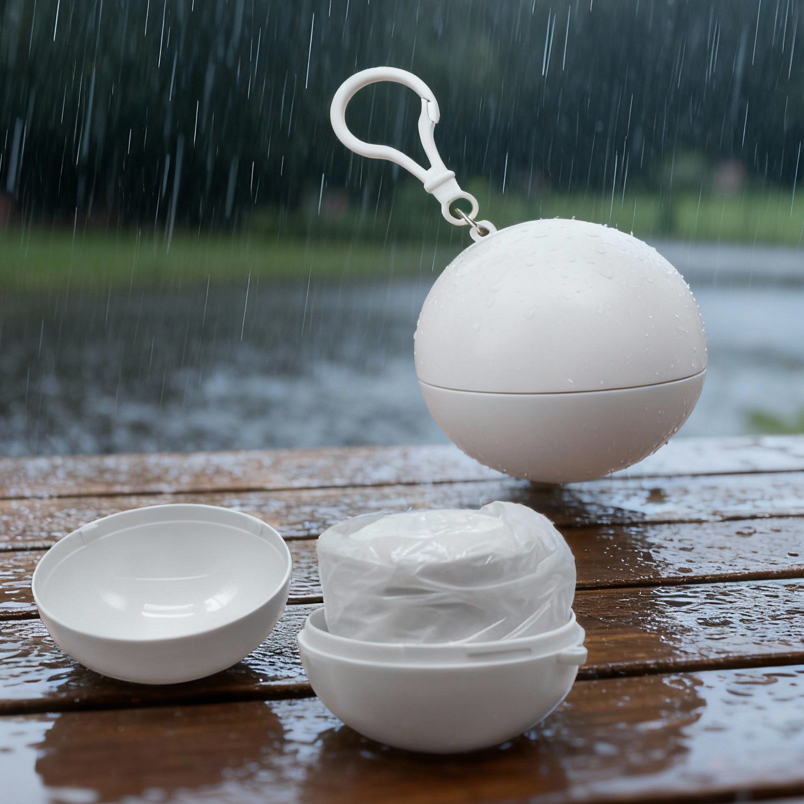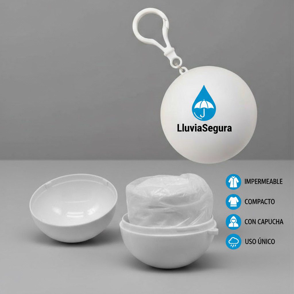 Prepárate para cualquier imprevisto con el poncho impermeable LluviaSegura, el accesorio indispensable para días lluviosos o eventos al aire libre. Este práctico poncho de uso único viene guardado en una esfera compacta con gancho, lo que te permite llevarlo fácilmente en tu bolso, mochila o llavero sin ocupar espacio.