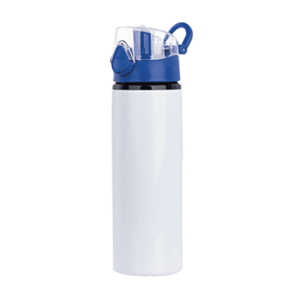 Tomatodo de aluminio de 750 ml color blanco con tapa color azul
