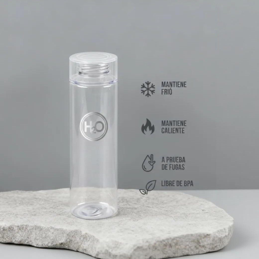 Botella Transparente H2O | Mantiene Bebidas Frías y Calientes | Libre de BPA y A Prueba de Fugas | Ideal para Oficina, Gimnasio y Merchandising Personalizado