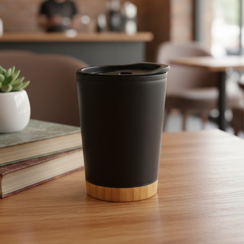 Vaso Térmico con Base de Bambú Sostenible – Libre de BPA y con Tapa Antiderrames